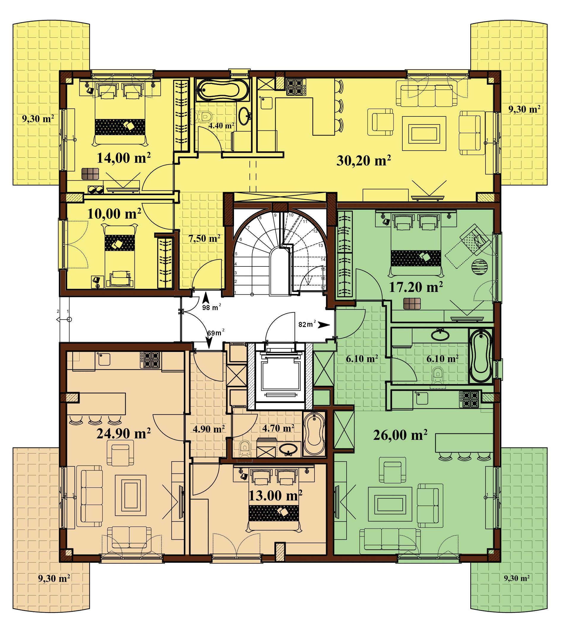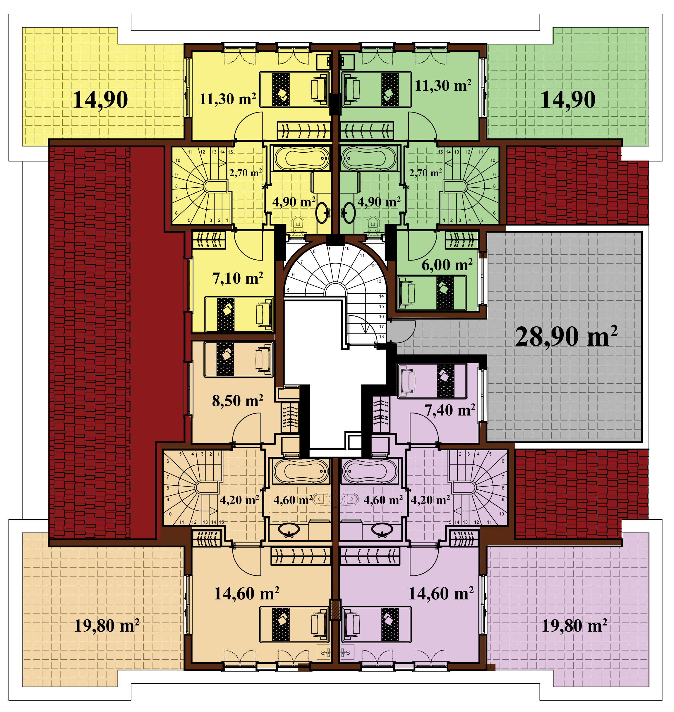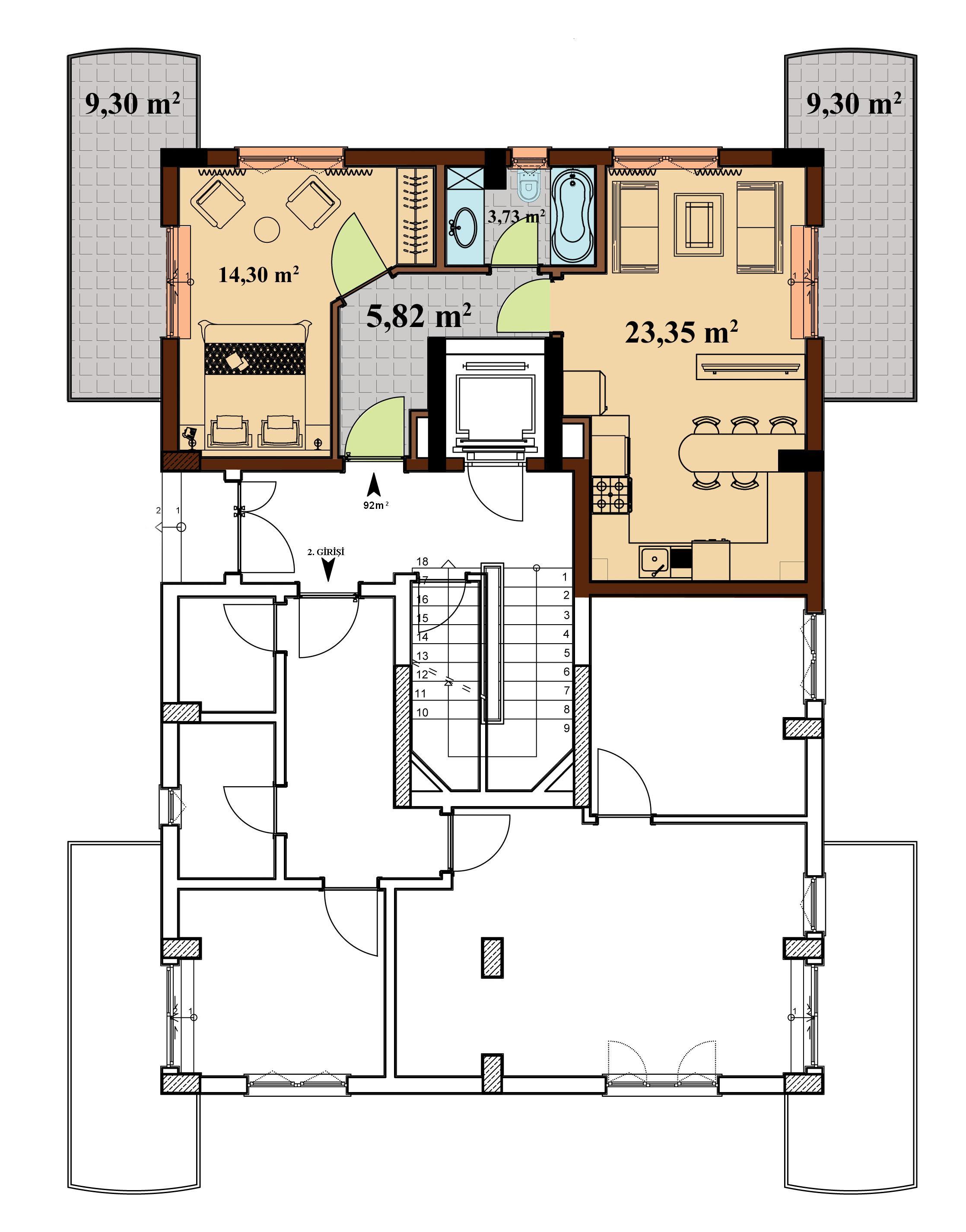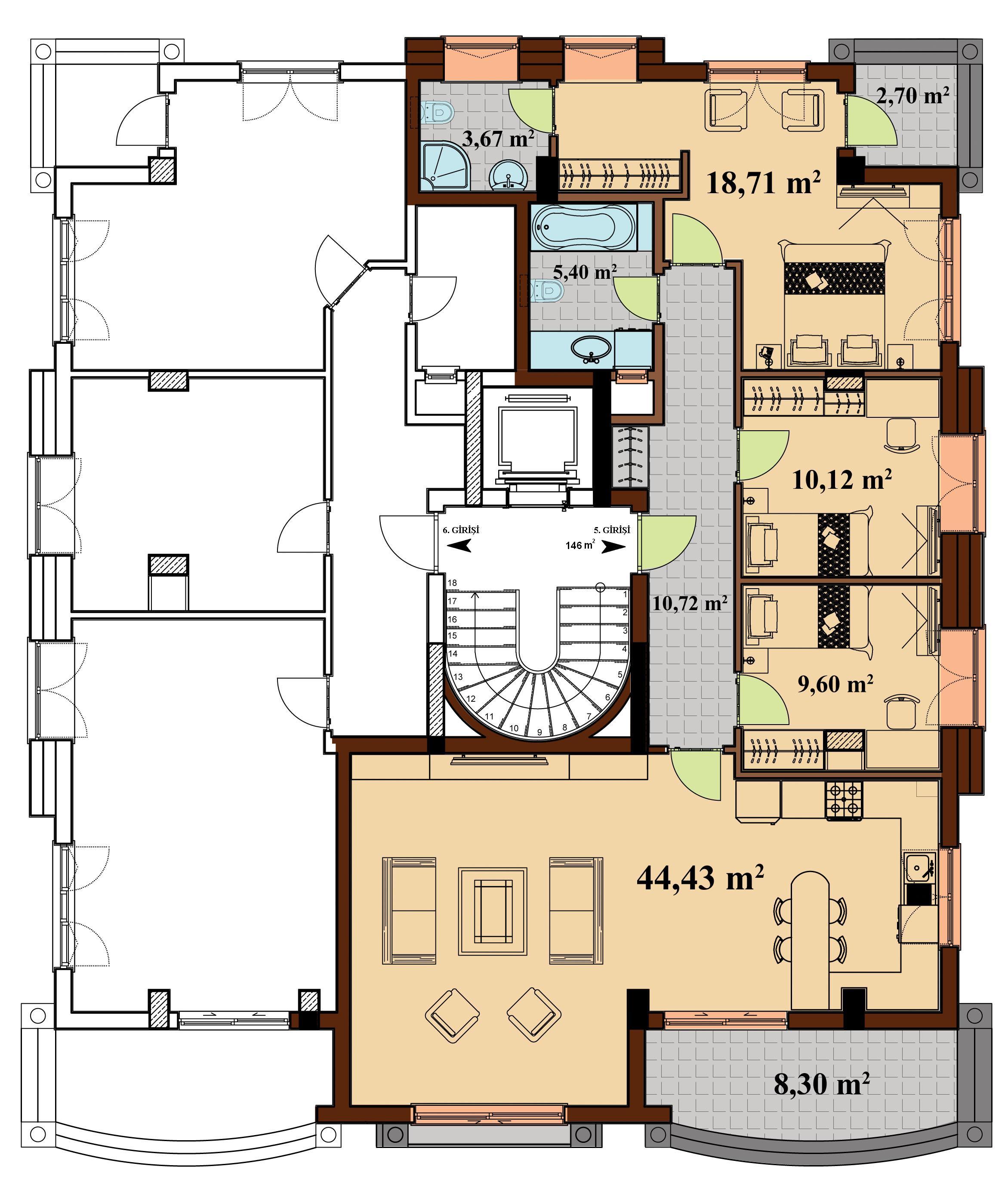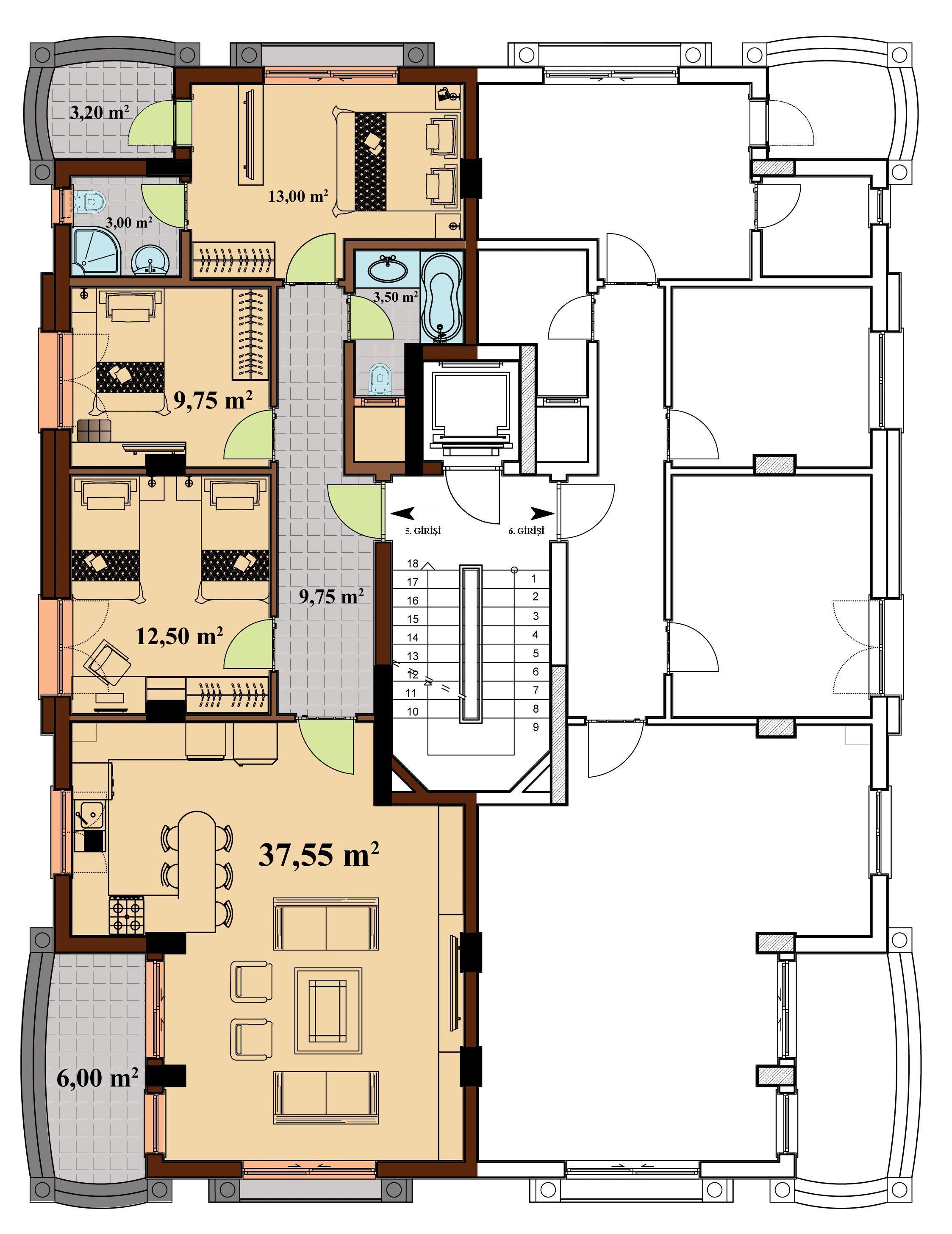 2. etap E blokta toplam 12 adet daire mevcuttur. Bahçe katında 84 m2 1+1, ara katlarda 120 m2 büyüklüğünde 3+1 daireler yer almaktadır. Şahane teras manzarasına sahip , 125 m2 büyüklüğünde 1 adet 3+1 dublex bulunmaktadır.
